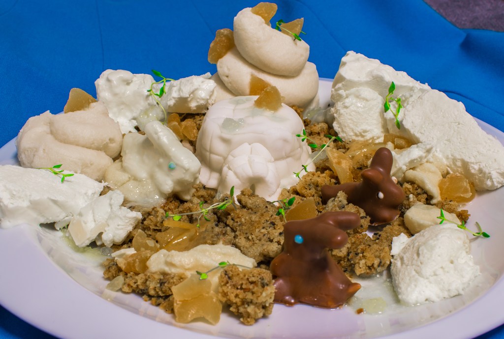 Ich habe mich hierzu von Adriano Zumbo´s Dessert „Can´t sell ice to eskimos“ inspirieren lassen. (und es, zugegebenermaßen, stark vereinfacht)
