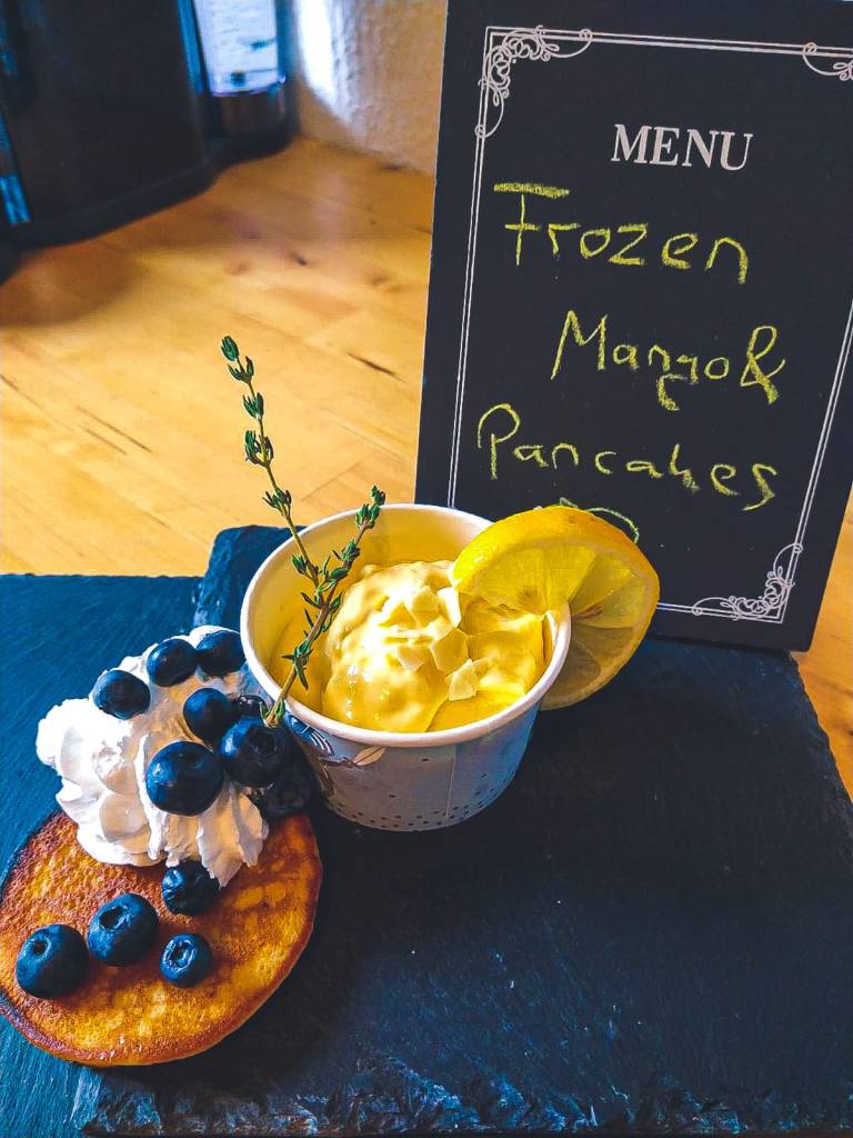 Auf Grund der neuerlichen, sommerlichen Temperaturen habe ich diesmal ein total simples aber ultra leckeres Rezept: Frozen Skyr mit Mango 🙂