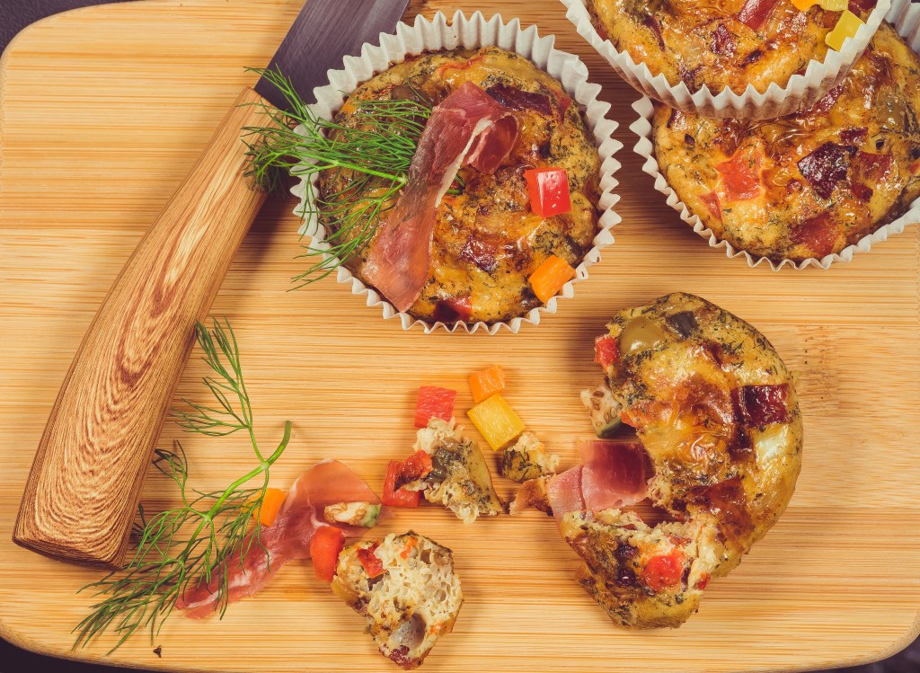 Ich habe mich diesmal für Ei-Muffins mit Gemüse und Bacon und als Beilage Couscous entschieden.
