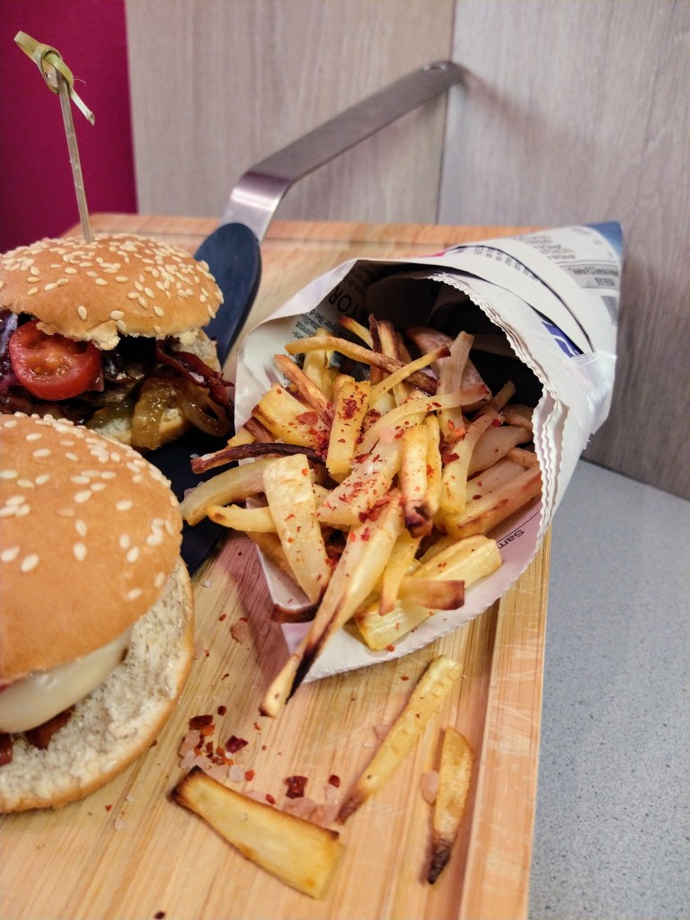 Für das gute Gewissen sind die Fritten aus Gemüse und im Ofen zubereitet, yummy 🙂